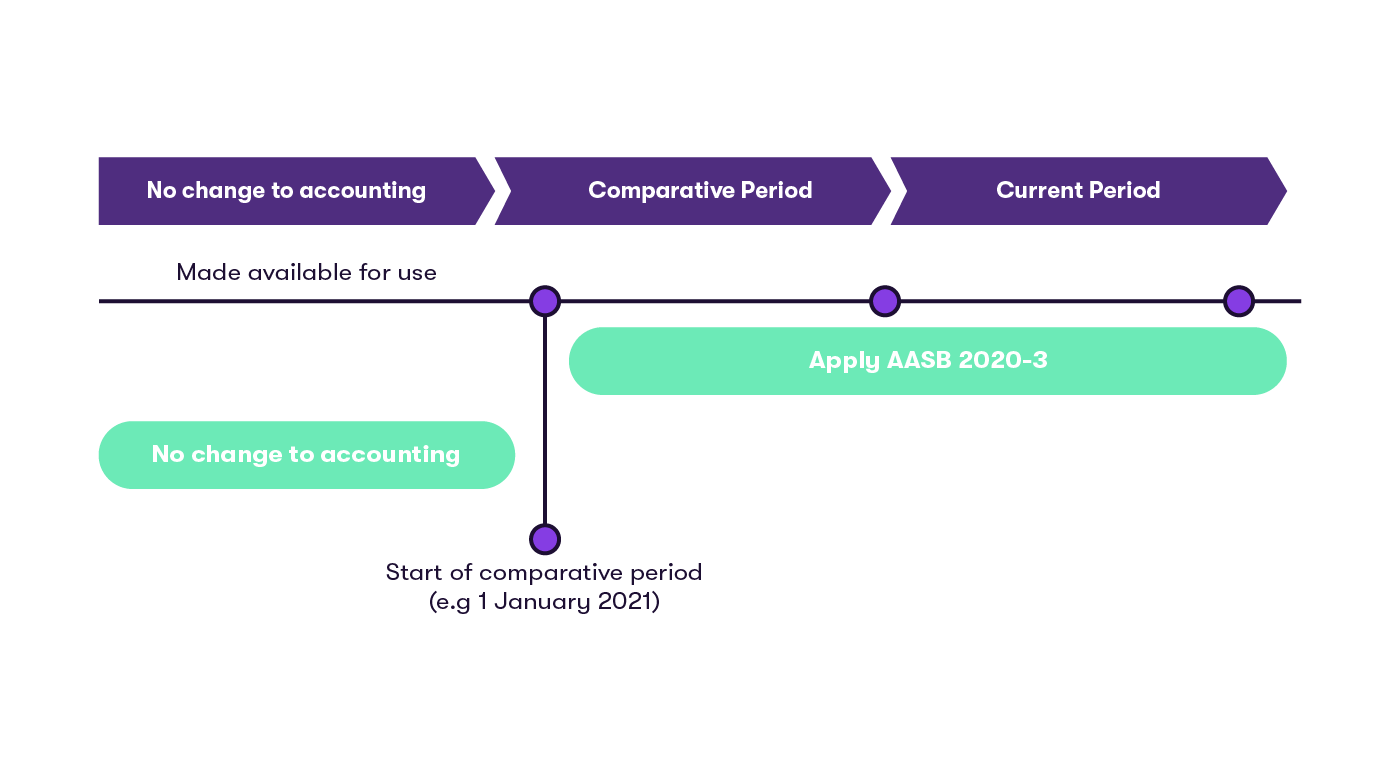 The amendment is to be applied retrospectively, to all assets which were made available for use at the beginning of the earliest comparative period presented in the financial statements in which the entity first applies the amendment. Therefore, if an entity has a 31 December 2022 year end, any assets which were made available for use from 1 January 2021 onwards must comply with the amendments in AASB 2020-3.