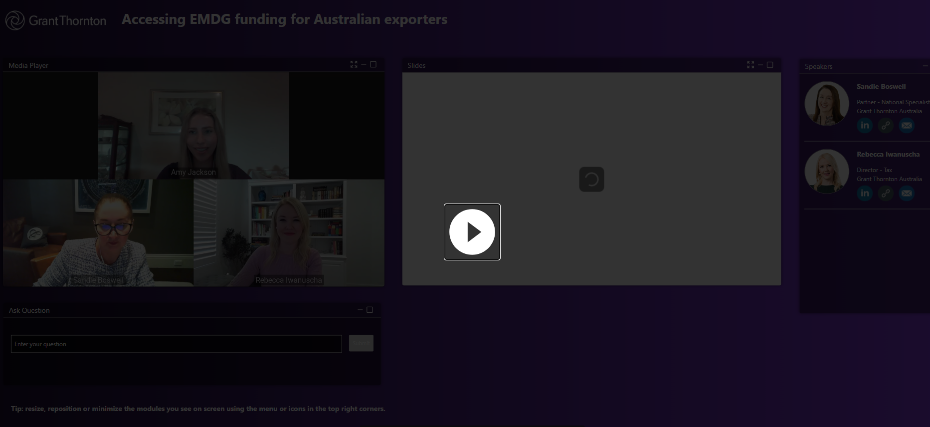 Watch this webinar on-demand to ensure you understand your eligibility, the pitfalls and opportunities of the EMDG program for you to streamline your strategy.