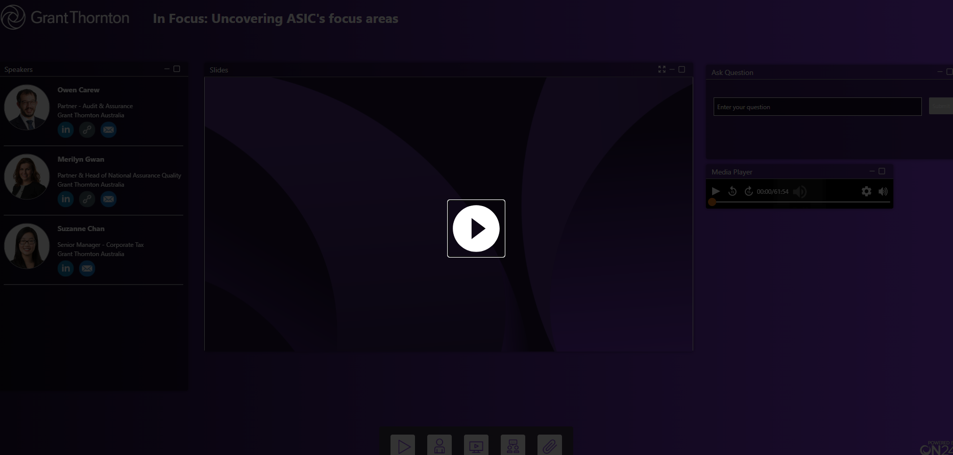 In this context, coupled with an expected ‘return to normal’ for surveillance and an increase in enforcement activity by regulators, this webinar will cover ASIC’s areas of focus. These include asset values, provisions, solvency and going concern assessments. You’ll also hear about the key considerations when preparing disclosure of these issues, the role directors play in financial reporting, their responsibility around the information presented, and the penalties they are liable for when financial reporting goes wrong.