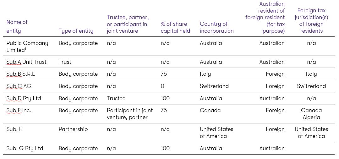 - If the entity was a foreign resident, a list of each foreign jurisdiction in which the entity was a tax resident.