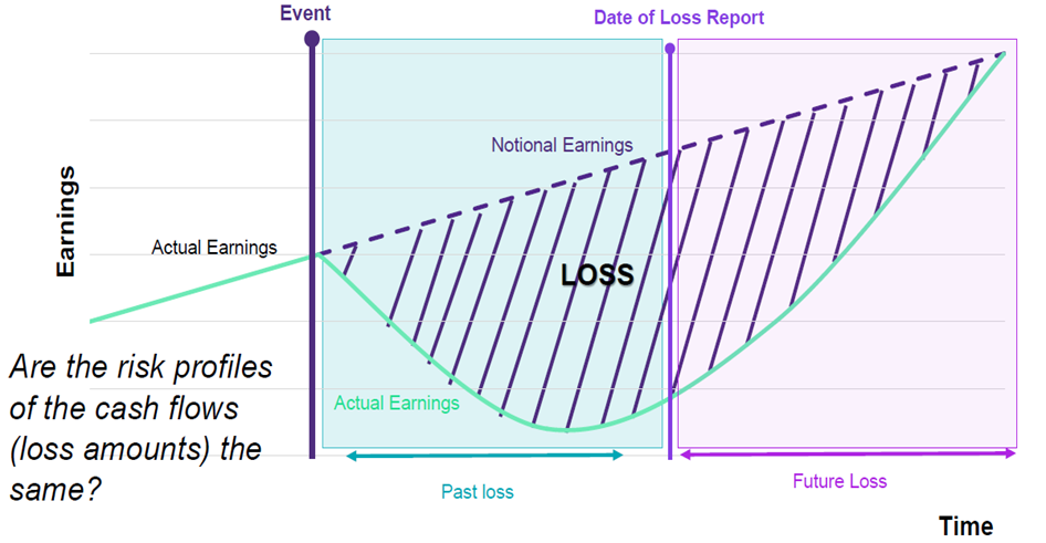 - Reflect the economic reality of the loss, which is directly linked to time. The value of the loss depends on when it occurs and how long it lasts. For example, a loss of $200,000 in year one is worth more than a loss of $200,000 in year five.