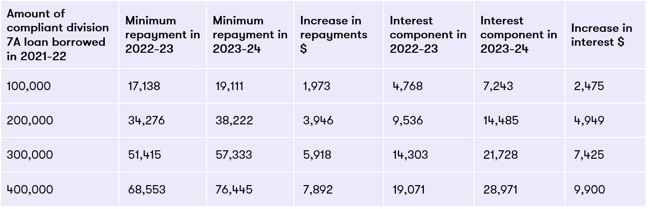 From 1 July 2023, the benchmark interest rate for Division 7A loans increased from 4.77 per cent p.a. to 8.27 per cent p.a.