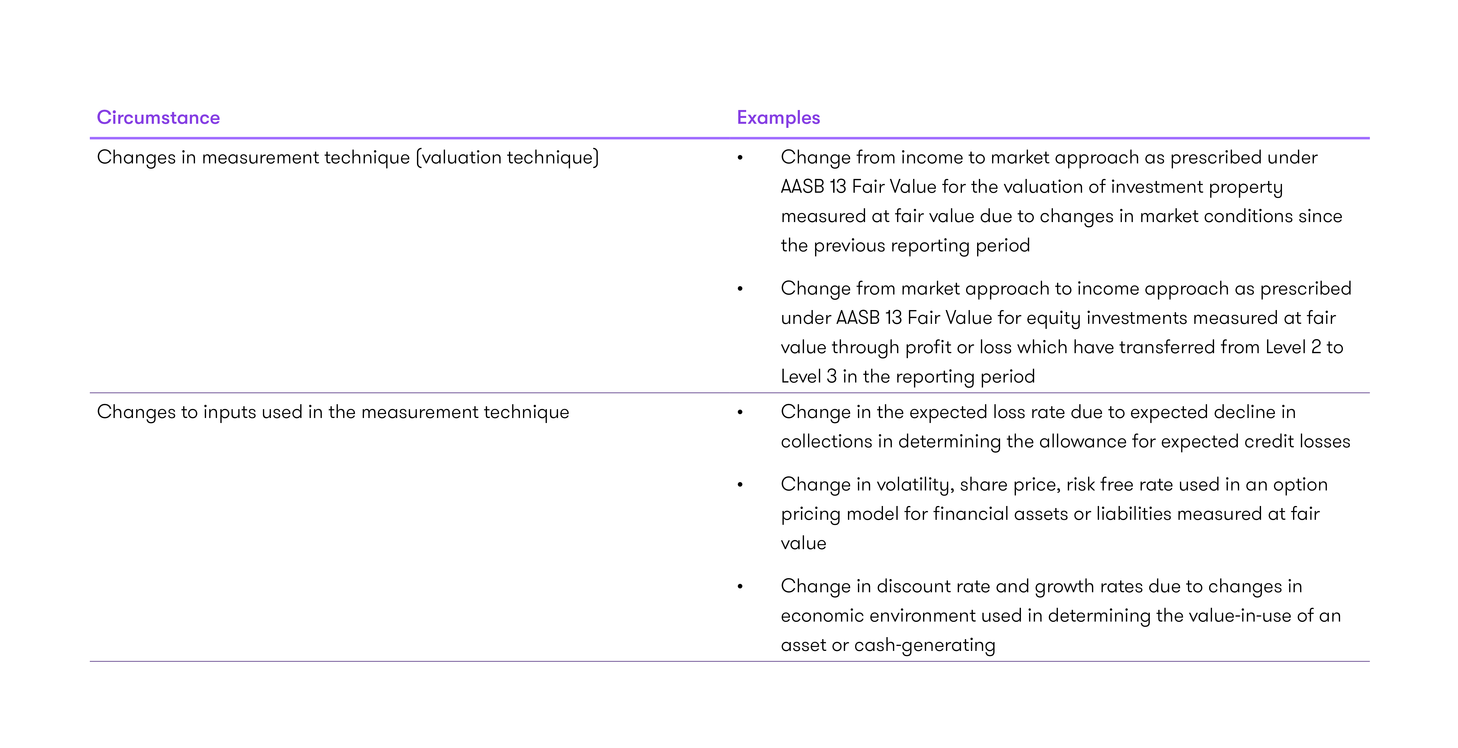 - the value of the estimate has changed at reporting date based on current facts and circumstances through a change in measurement technique and/or inputs used in the measurement technique applied.