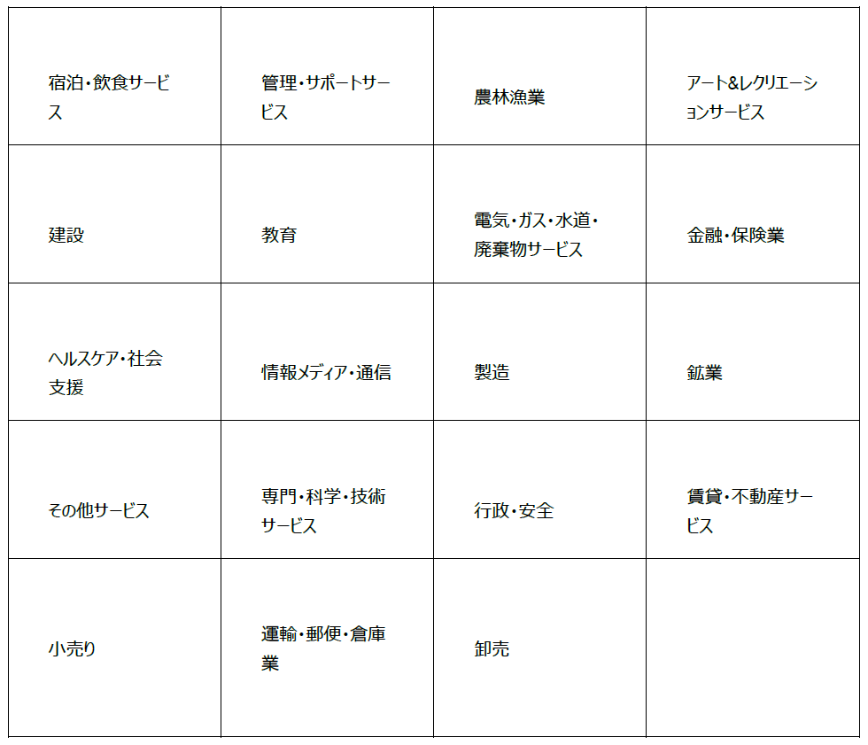 これらの産業部門は、以下のさらなる分析の構成としました。