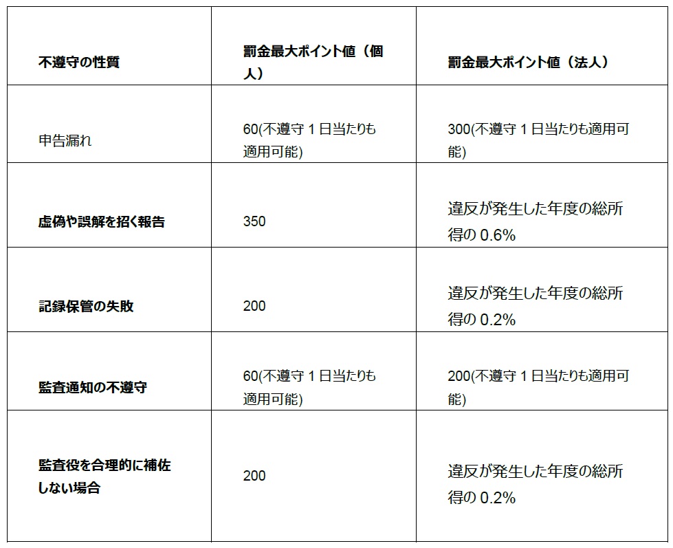 新しい報告義務に従い、報告主体が報告要件を遵守しない場合、裁判所は民事罰を科すことができます。報告主体には、実施日から制度および報告要件を熟知するために、12ヶ月の罰金無料の移行が与えられています。2022年1月1日からは、様々なレベルの非遵守に対する民事制裁金が強制力を持つようになりました。